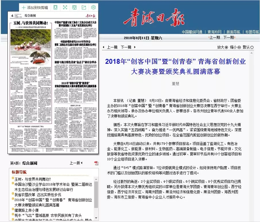 由青海省經(jīng)濟(jì)和信息化委員會、青海省財政廳和共青團(tuán)青海省委聯(lián)合主辦的2018年“創(chuàng)客中國”暨“創(chuàng)青春”青海省創(chuàng)新創(chuàng)業(yè)大賽決賽經(jīng)過4個多月的精心籌備已于8月10日在青海省廣播電視臺圓滿落幕。